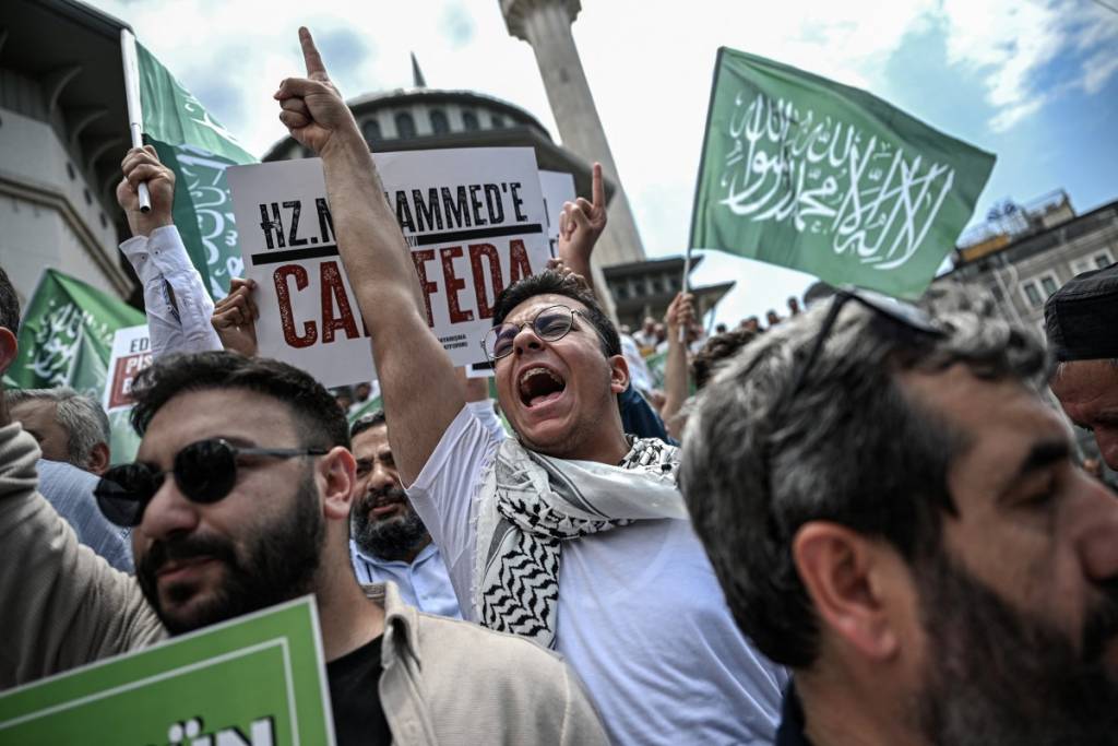 Angry protesters rallied in Istanbul on Tuesday despite a heavy police presence, shouting threats following allegations a satirical magazine published a cartoon of the Prophet Muhammad (peace and blessings be...