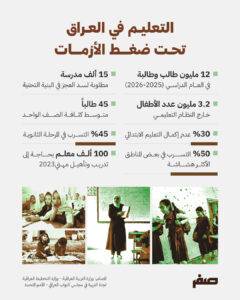 تظهر المعطيات الصادرة عن وزارة التربية العراقية ومنظمة الأمم المتحدة للطفولة وبرنامج الأمم المتحدة الإنمائي أن النظام التعليمي في العراق يقف عند نقطة توازن هشة بين الاستمرار والتعثر، وبينما يستوعب أكثر من 12 مليون طالب، فإنه يعاني من نقص حاد في المدارس والكوادر وارتفاع معدلات التسرب، ما يجعله شديد الحساسية لأي توتر أمني، وفي ظل استمرار المخاوف من تداعيات الصراعات الإقليمية، يبقى التعليم في العراق معرضا لإعادة إنتاج أزماته، حيث يؤدي تداخل عوامل البنية التحتية الضعيفة، والضغط السكاني، والهشاشة الأمنية إلى تهديد استمرارية العام الدراسي، بما يحمل ذلك من انعكاسات طويلة الأمد على مستقبل الأجيال والتنمية في البلاد.