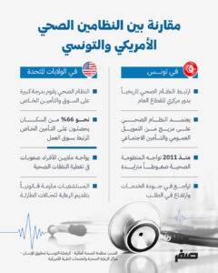 كما ينص الدستور التونسي على أن الصحة حق لكل إنسان، في حين يسعى قانون الرعاية الصحية في الولايات المتحدة إلى توسيع الوصول إلى الخدمات.