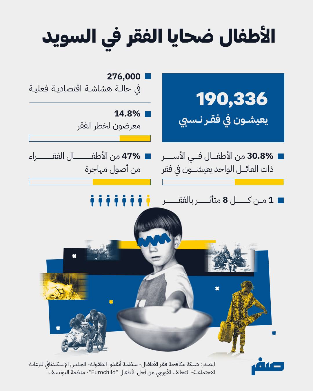 تظهر الإحصاءات الحديثة ثلاث دوائر متداخلة للفقر بين الأطفال في السويد؛ الأولى تشير إلى نحو 190336 طفلا يعيشون في فقر نسبي وفق المعيار الأوروبي الذي يحدد الدخل بأقل من 60 بالمئة من متوسط الدخل الوطني، أما الدائرة الأوسع فتضم نحو 276 ألف طفل يعيشون في حالة هشاشة اقتصادية فعلية، وفقاً لتقديرات منظمة أنقذوا الطفولة، وهي تشمل الأطفال الذين تعجز أسرهم عن تلبية الاحتياجات الأساسية، كما تشير بيانات أوروبية إلى أن ما يقارب 14.8 بالمئة من الأطفال معرضون لخطر الفقر بشكل عام بحسب منظمة “أنقذوا الطفولة” والمجلس الإسكندنافي للرعاية الاجتماعية.