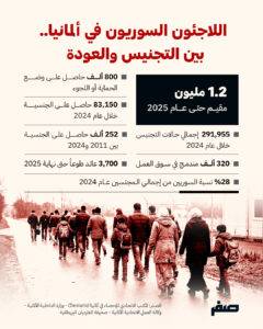 وتكشف بيانات المكتب الاتحادي للإحصاء في ألمانيا (Destatis) أن السوريين يتصدرون قائمة الحاصلين على الجنسية الألمانية في السنوات الأخيرة، حيث تم تجنيس نحو 83,150 سورياً خلال عام 2024 وحده، من إجمالي 291,955 حالة تجنيس، وهو أعلى رقم سنوي مسجل في تاريخ البلاد، كما تُظهر البيانات التراكمية الصادرة عن المكتب الاتحادي للإحصاء الألماني أن نحو 252 ألف سوري حصلوا على الجنسية الألمانية بين عامي 2011 و2024، ما يعكس تسارعا ملحوظًا في وتيرة التجنيس، خاصة بعد تعديل القوانين التي خفّضت مدة الإقامة المطلوبة إلى خمس سنوات، وتؤكد هذه الأرقام أن سياسة الإدماج عبر التجنيس أصبحت مسارا رئيسيا في التعامل مع الوجود السوري داخل ألمانيا.