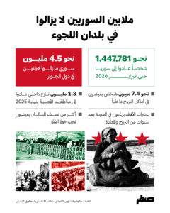 وتظهر إحصاءات الأمم المتحدة أن نحو 4.5 مليون سوري ما زالوا لاجئين في دول الجوار، بينما يعيش نحو 6.5 مليون شخص كنازحين داخليًا، ما يعني أن نسبة العائدين تمثل جزءًا محدودًا من مجموع السكان المتأثرين بالنزوح.